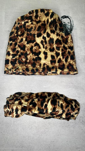 اسکارف کلاهی مخملی طرح پلنگی و ببر | کلاه و اسکارف دوکاره زمستانی شیک و گرم