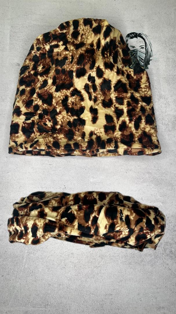 اسکارف کلاهی مخملی طرح پلنگی و ببر | کلاه و اسکارف دوکاره زمستانی شیک و گرم
