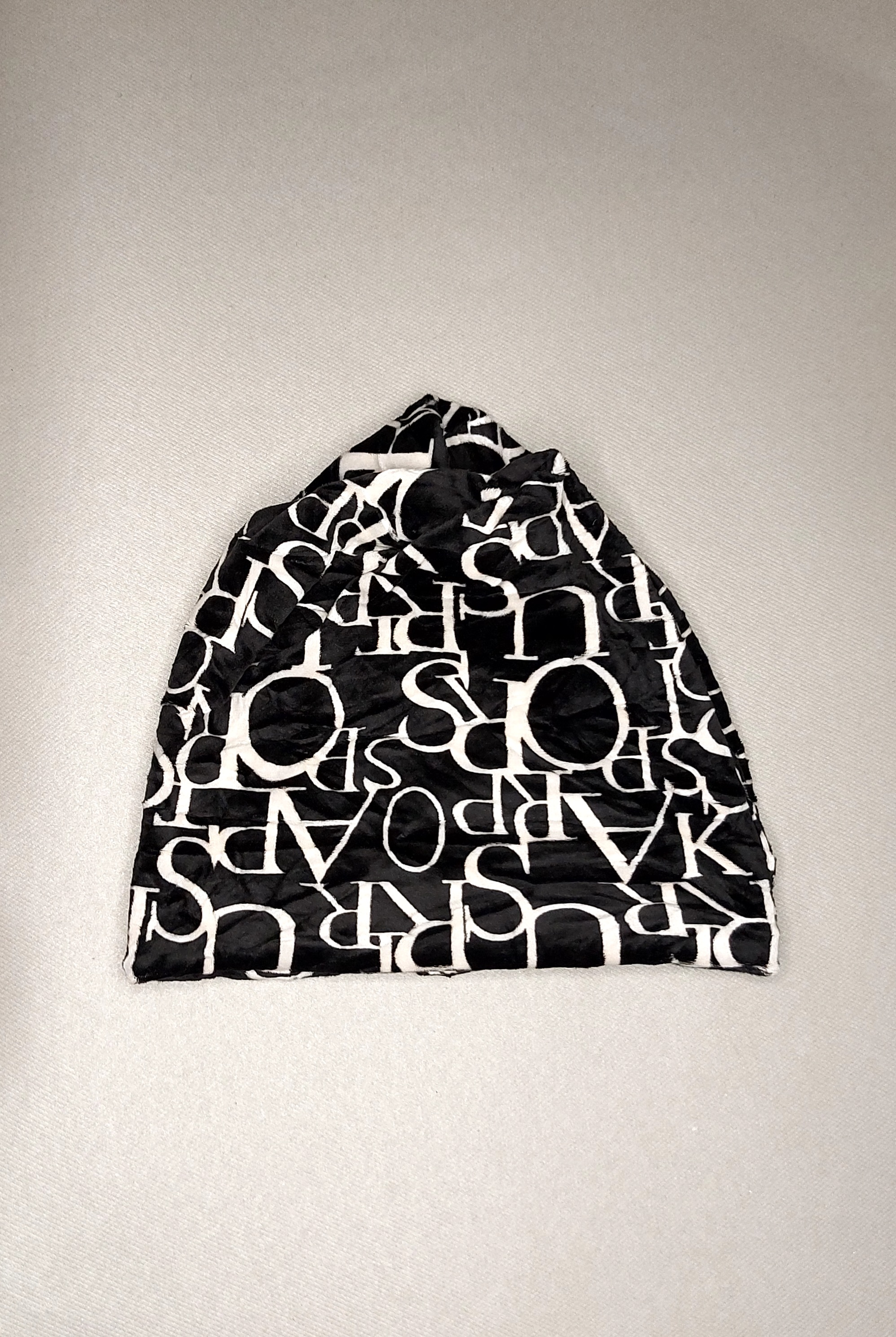 اسکارف کلاهی مخملی طرح حروف انگلیسی | کلاه و اسکارف دوکاره زمستانی شیک و گرم