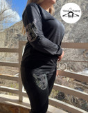 ست دو تکه دورس و شلوار زنانه ، مشکی کارشده ، بسیار خنک و شیک