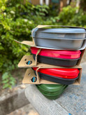 یک پکیج کامل از ظروف کاربردی، قاشق و چنگال و نگهدارنده که هم به عنوان ظروف سرو و حمل غذا در کمپ قابل استفاده هستند، هم برای مدرسه بچهها فوقالعاده کاربردیاند.