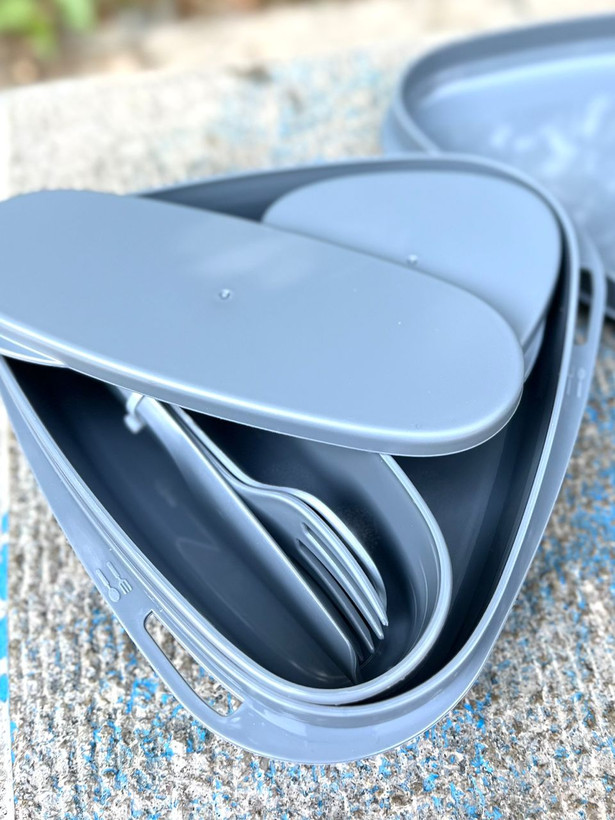 این پک دارای یک ظرف مثلثی بزرگ، تخته برش، یک ظرف مثلثی کوچک، یک ظرف بیضی و ست قاشق چنگال کارد است، که همه از جنس پلیپروپیلن خوراکی تهیه شدهاند.