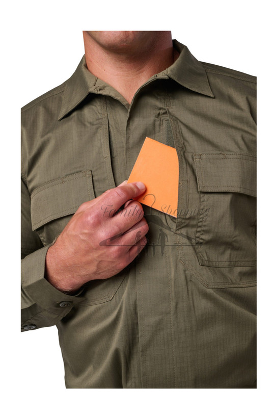 دارای چند جیب مخفی و جیب چسبی روی سینه برای حمل وسایل ضروری مثل کارت، موبایل یا ابزار کوچک است. قسمت سرشانه و آستینها با دوخت دوبل تقویتشده طراحی شده تا در برابر فشار و حرکت زیاد دوام بالایی داشته باشد.