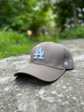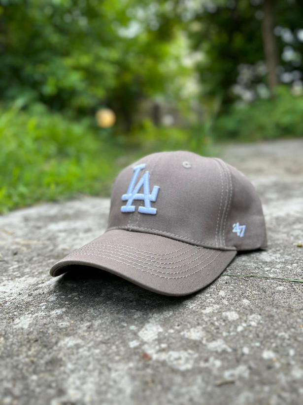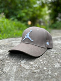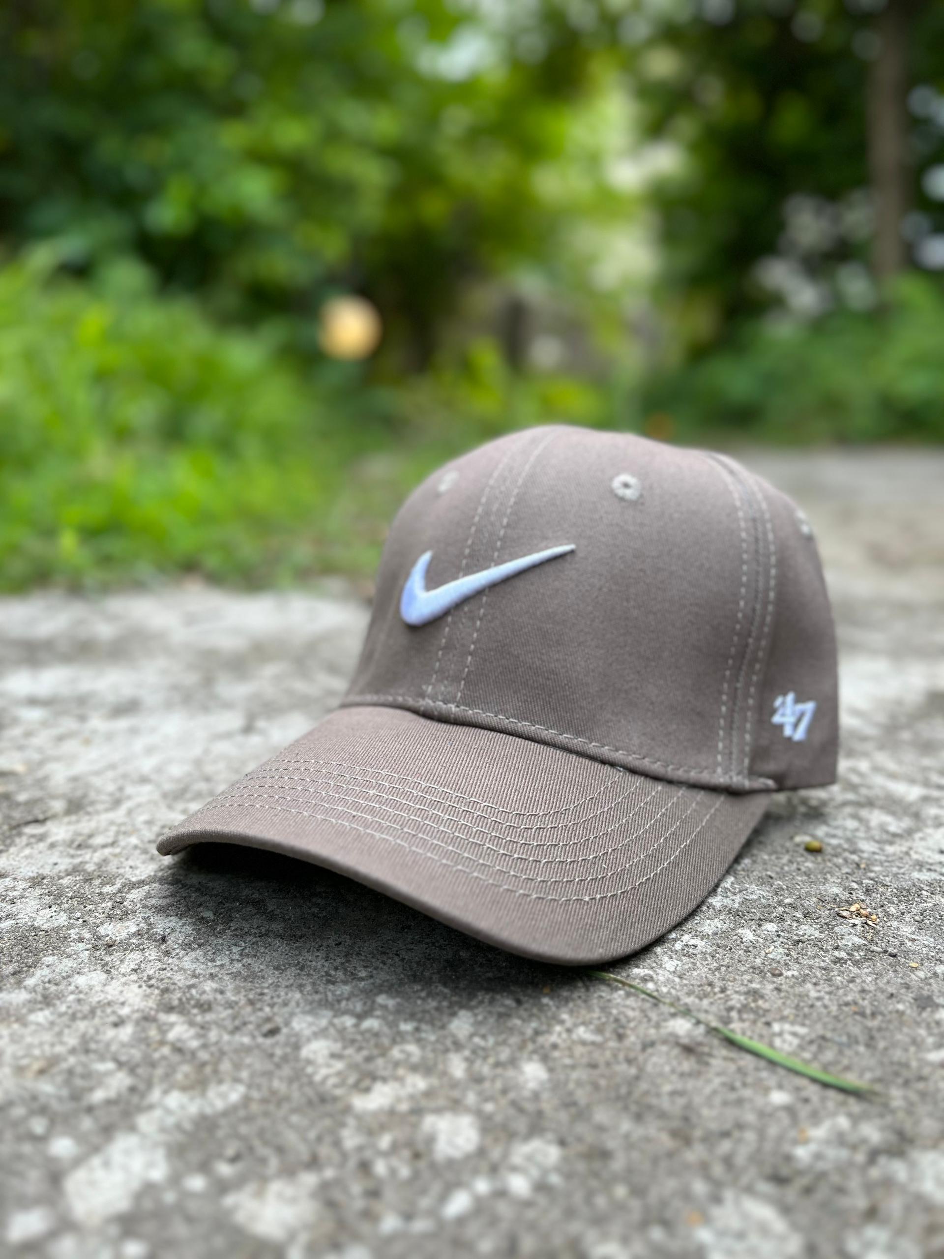 دو مدل از پرطرفدارترین کلاههای بیسبالی با طراحی خاص نایکی و LA و جردن، در رنگ خاکی.