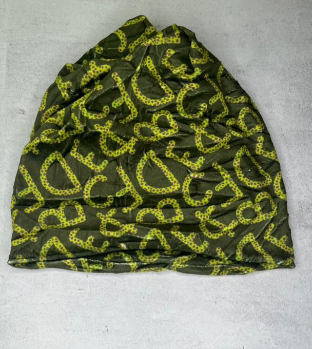اسکارف کلاهی مخملی سبز طرحدار | کلاه و اسکارف دوکاره زمستانی شیک و گرم