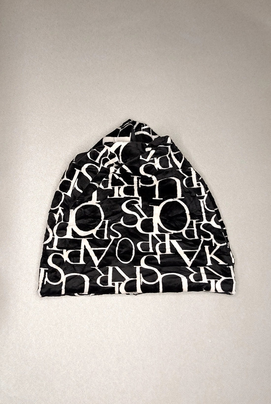 اسکارف کلاهی مخملی طرح حروف سفید یکی از خاصترین مدلهای زمستانی برای استایلهای اسپرت و روزمره است.